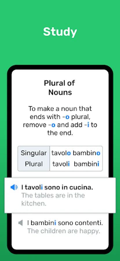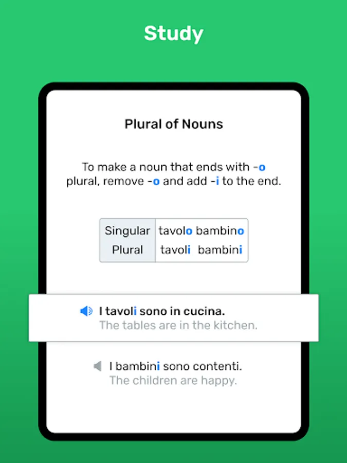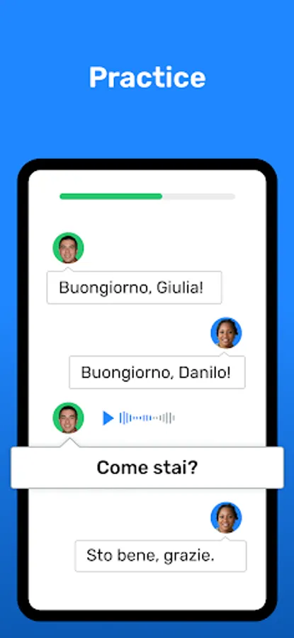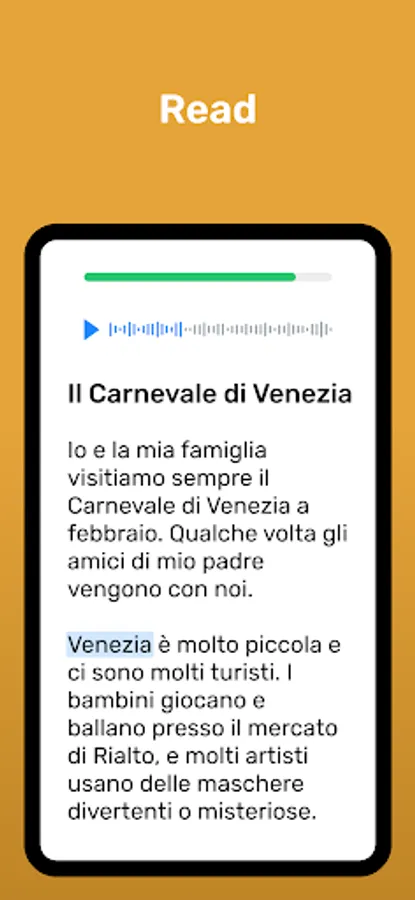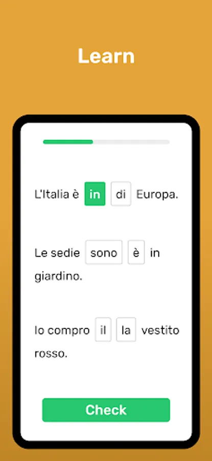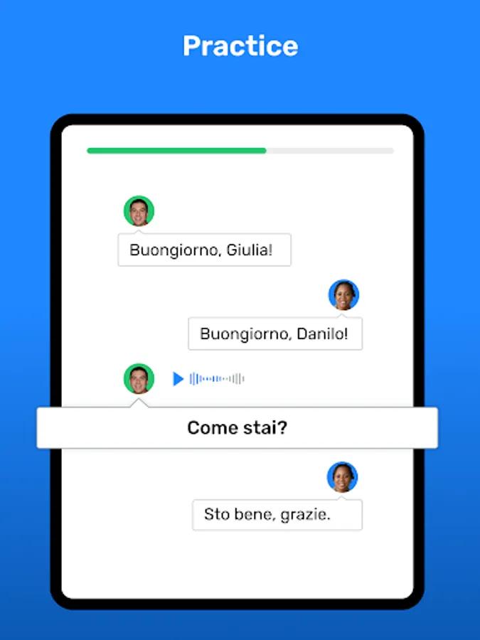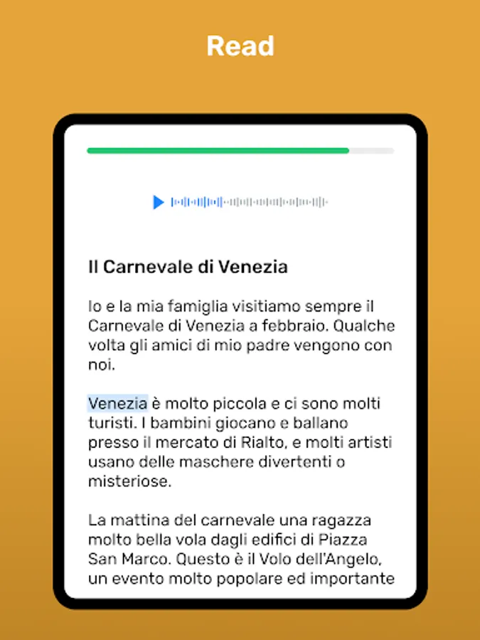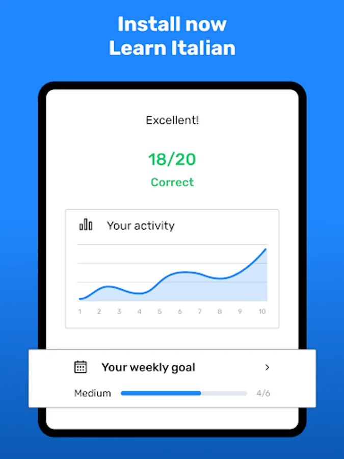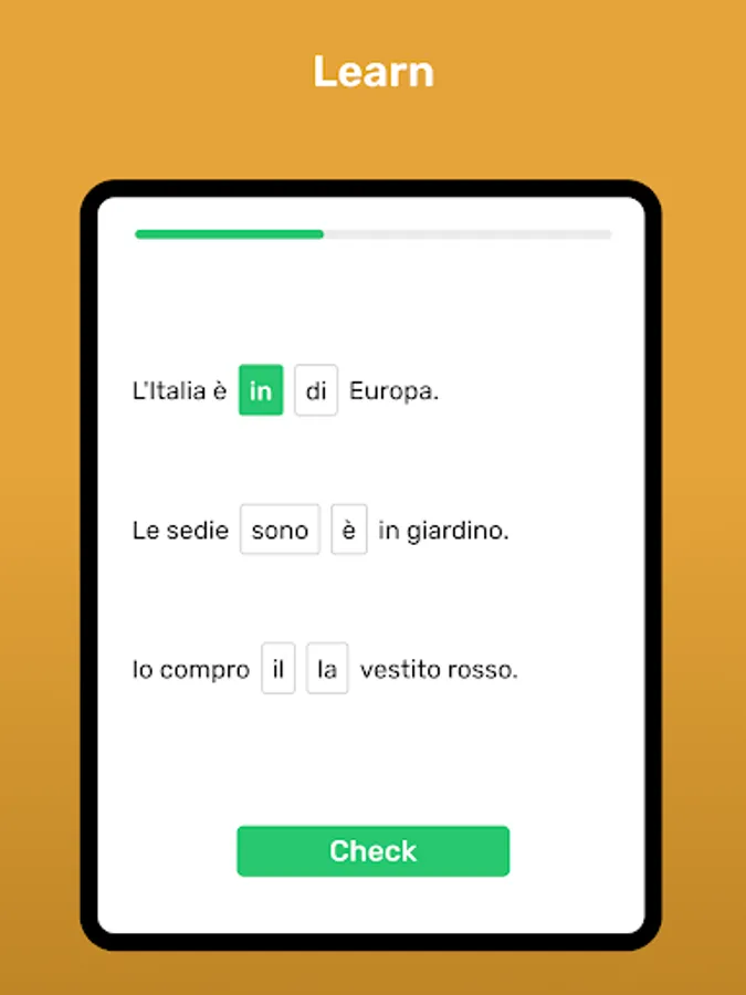 A learning process designed for you that is both easy and guided: You’ll feel like you’re learning more and more Italian every day. Every sentence, exercise, review, and reading has been carefully selected for you.