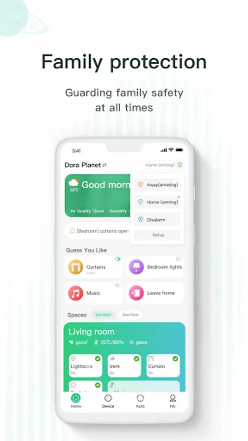 Dora Home, a professional smart home application, by which you can conveniently control and manage smart devices, and create linkage between different devices to fit for all kinds of scenario in your life.