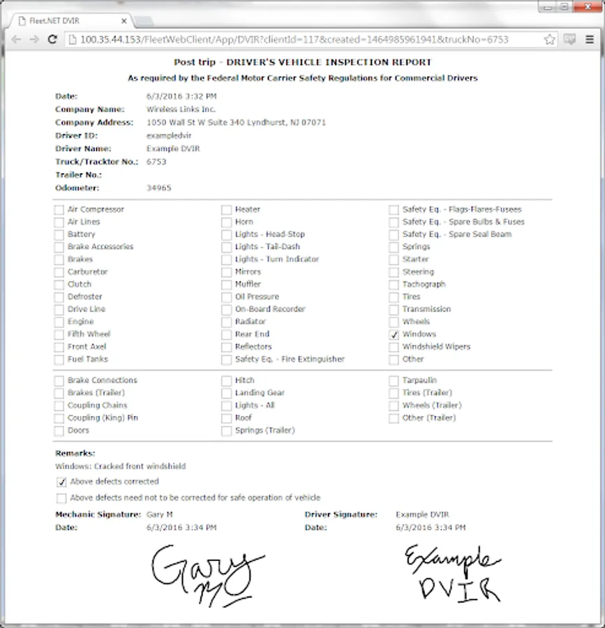 An electronic solution for pre-trip and post-trip driver vehicle inspection reports.