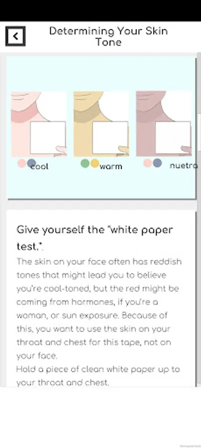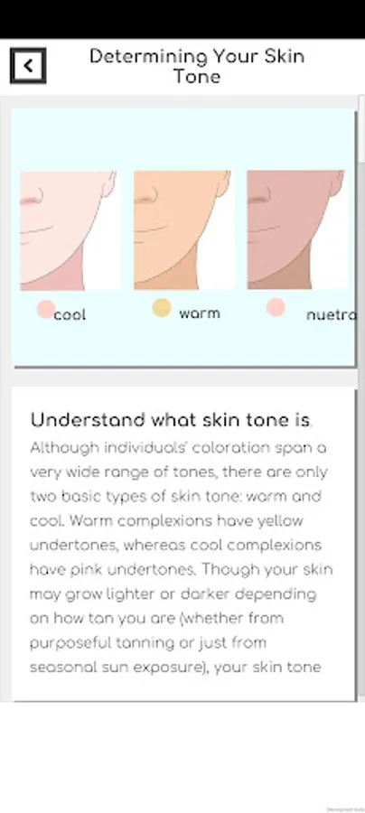 Wardrobe assistant have "Determine my skin tone" tool, It help you to understand you skin tone. You just need to follow instruction to know your skin tone.