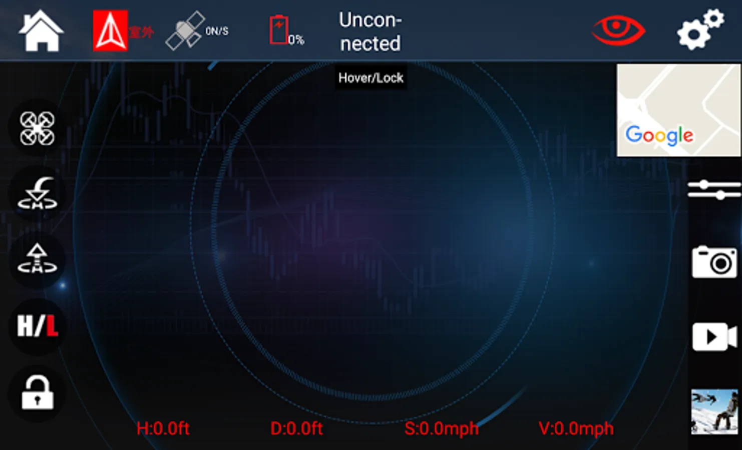 2.Display the real-time video which taken by the camera on the aircraft,video data transmitted via 2.4G WiFi protocol.