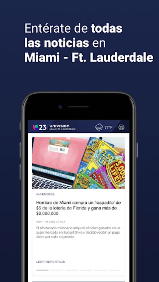 Univision Miami es el portal de noticias para la comunidad hispana en EE.UU. Noticias de inmigración, elecciones 2020, política, resultados de la lotería de Florida, información del tiempo, economía, negocios, finanzas, educación, salud, medio ambiente, tormentas tropicales, tornados, huracanes, Estados Unidos, el presidente Donald Trump, las deportaciones, entre otros. También puedes enterarte sobre las notas de opinión y mucho más.