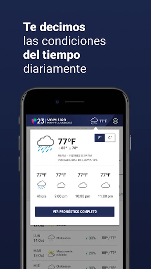 Pronóstico del tiempo con información del clima y condiciones meteorológicas.