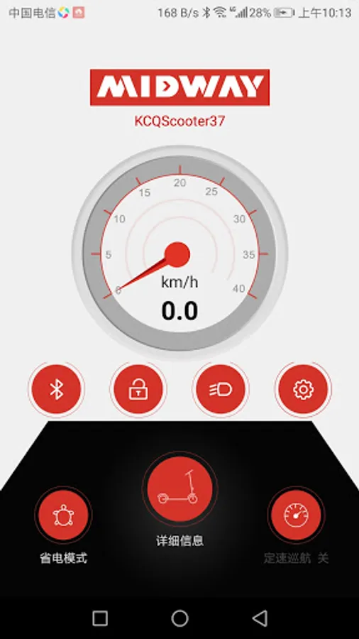Midway Max is an APP for electric vehicles. It connects and controls electric vehicles through the Bluetooth of the mobile phone, obtains the operating status of the electric vehicle and controls the electric vehicle; in the APP, you can view the real-time operating status, speed, etc. of the electric vehicle Information, and can set the operating parameters of the electric vehicle;