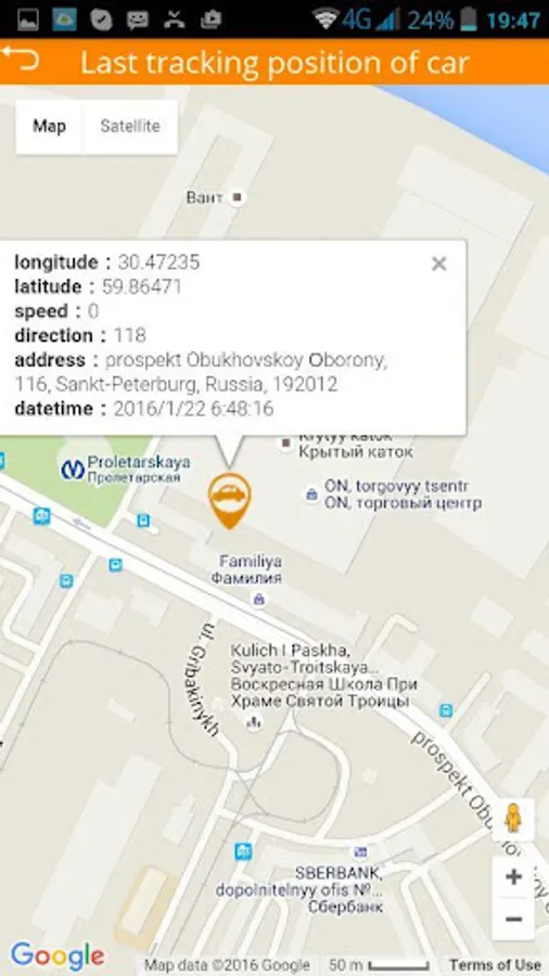 - Displays GPS / GLONASS data on the movement and speed of the vehicle