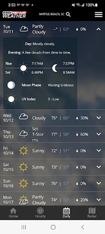 The WMBF Mobile Weather App includes: