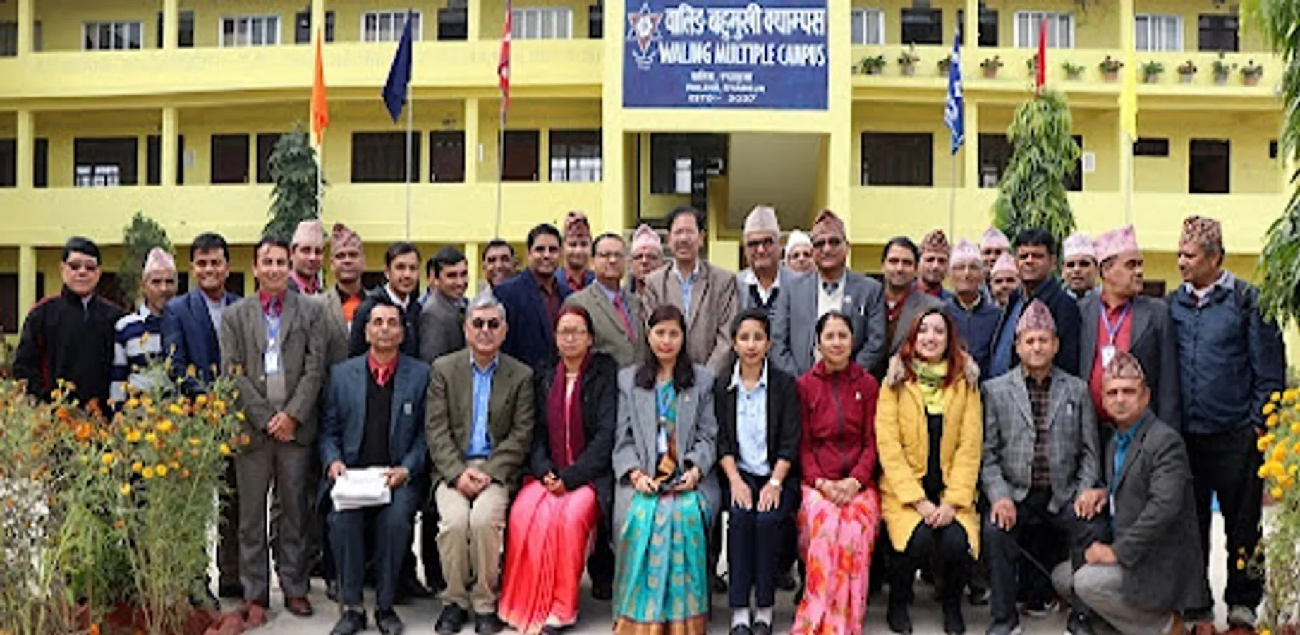 Established in 2037 B.S. (1980 A.D.) at the heart of Syangja district, Waling Municipality-9, Waling Multiple Campus (WMC), a community-based campus, has been imparting quality education at affordable fee structure to the students. The campus is the destination of academic pursuit for the students of Syangja district and nearby areas like northeast of Palpa, east of Gulmi, southeast of Parbat and south west of Tanahun districts. Now, Waling Multiple Campus is renowned as the first and leading educational institute in Syangja district.
