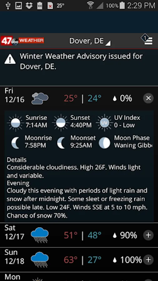 The WMDT 47abc Weather App includes: