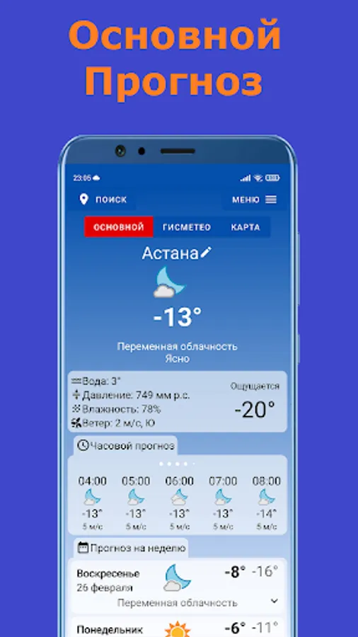 View up-to-date data on the real meteorological situation or use the additional options of the Weather Forecast application:
