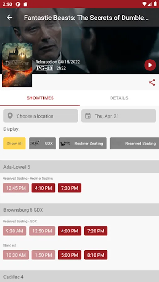 • Get Showtimes