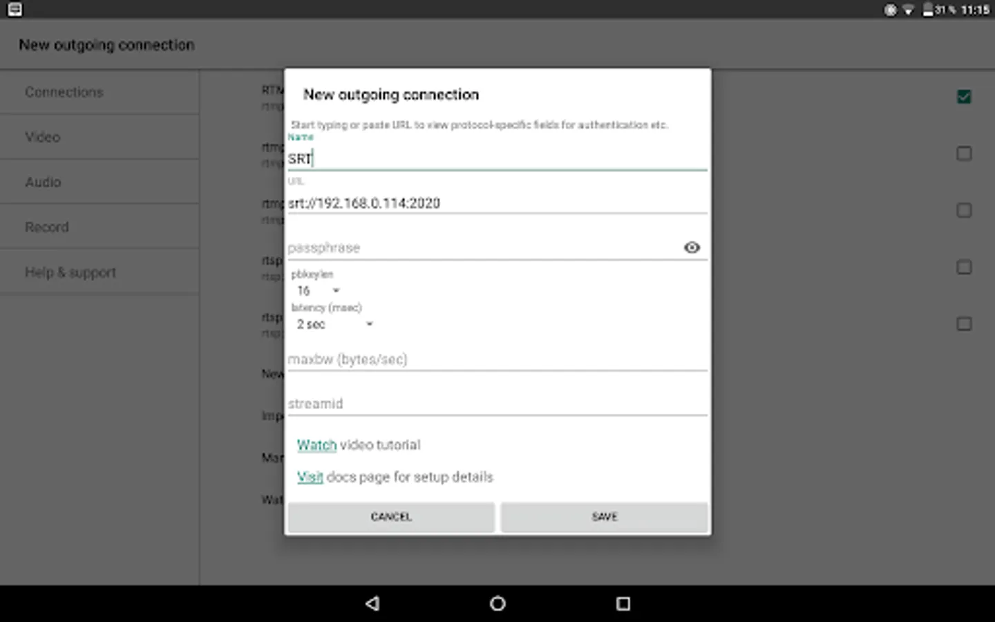 ~ Supports SRT streaming protocol based on reliable UDP, library version 1.4.4.