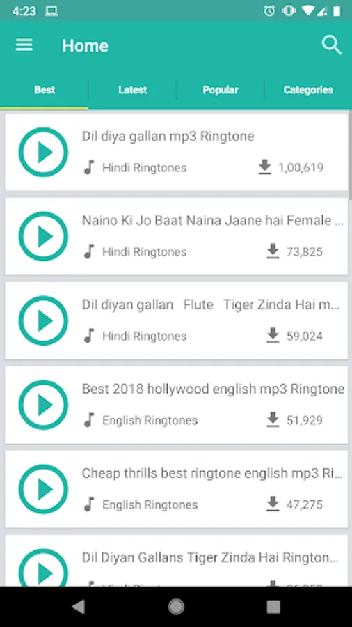 The application is connected with its parent site naming https://www.ringtoneshome.com/. The actual site is exceptionally convenient and have a ton of usefulness for its clients. Anyway this Android Ringtones application is extremely unique and stand-out.