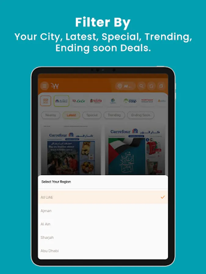 - Browse different offer categories such as: Nearby, Latest, Special, Trending, Ending Soon.