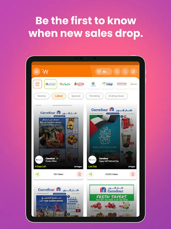 π Browse flyers and promotion offers from your favorite retailer. From Lulu offers from the Lulu Hypermarket UAE, Al Meera Offers, and Nesto hypermarket deals, to Spar flyers, Carrefour UAE and Qatar catalogs and discounts, you can find deals from the stores you usually shop and save money in various Middle East countries.
