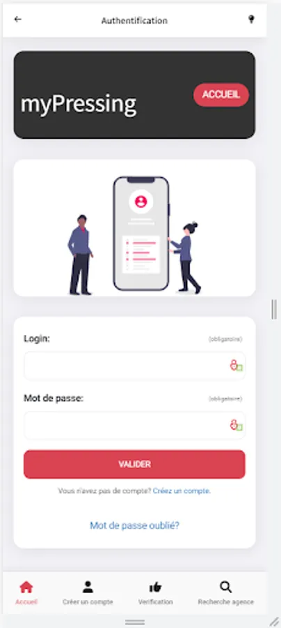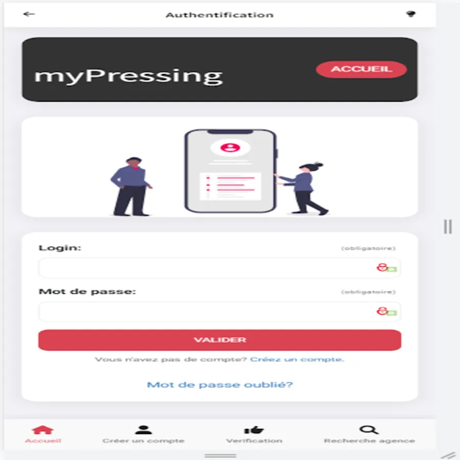 myPressing is a mobile application for the management of dry cleaning agencies and for anyone wishing to know the local dry cleaning agencies. She helps with client management and agency accounting. In addition to mobile, myPressing is accessible on desktop computers (accessible via a link in a browser).