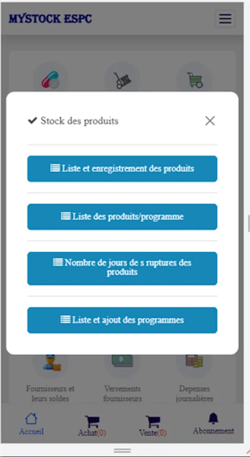 myStock ESPC est une application mobile et bureautique pour la gestion numérique des pharmacies des centres de santé publiques.
