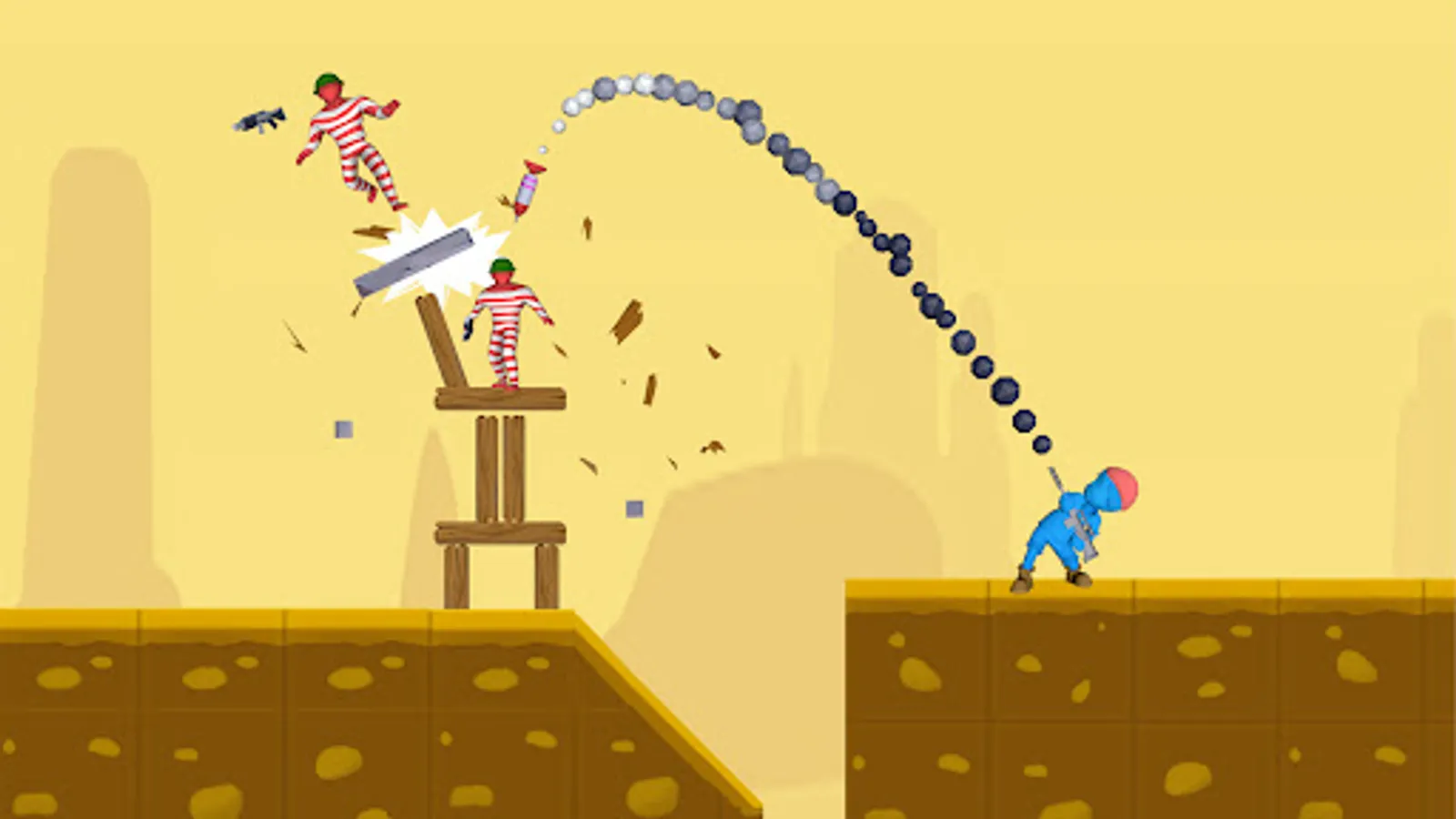 Unleash explosive and unique weapons to destroy everything in your path! Collect them all and harness their distinct qualities to make your enemies fly, blast their bases, and demolish their buildings. Satisfying destruction and endless possibilities await you in this shooter game. Encounter fun enemies and crazy explosions with endless content and challenges to annihilate all foes and achieve victory! Each level offers a distinct and thrilling experience with stunning explosion and physics effects.