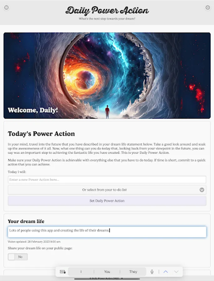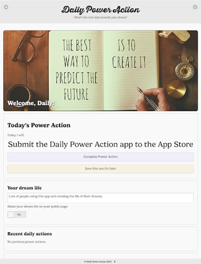 The life of your dreams is within your reach! The key is consistency of action. With Daily Power Action, you choose to commit to taking one action each day, every day, that will help you achieve your long term goals and ambitions.