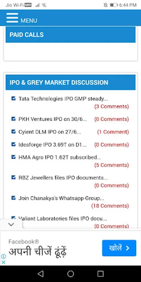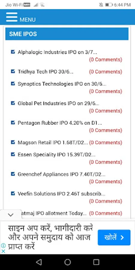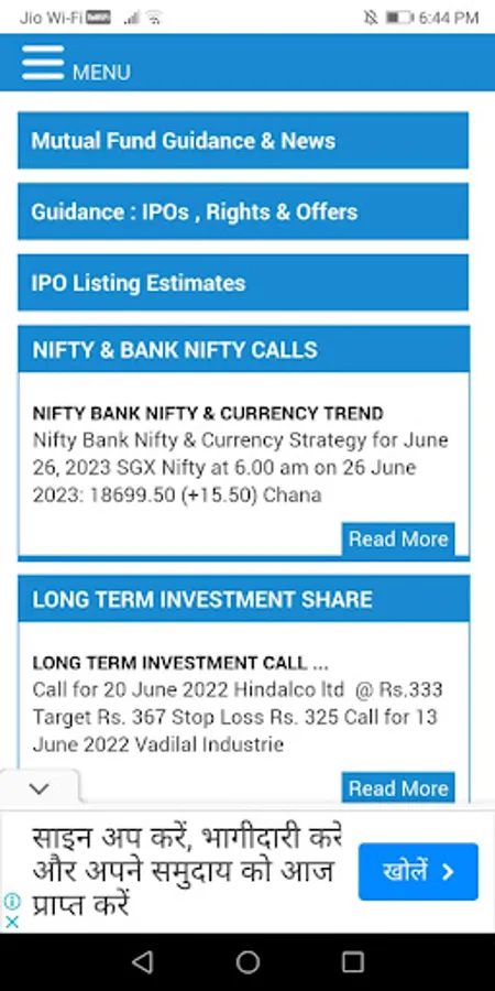 The app is popular platform for IPO details, review and updates of grey market premium. It is popular for its Short term calls, small cap calls, Equity option calls, future calls, guidance for Rights issue, buyback, Open offers, Mutual fund details & guidance and stock market news.