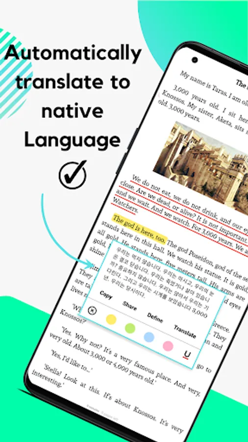 ● A word you don’t know? It’s is not an issue with English Story in Levels. Just one tap on the word to see its’ translation. And you can add a highlight and add notes.
