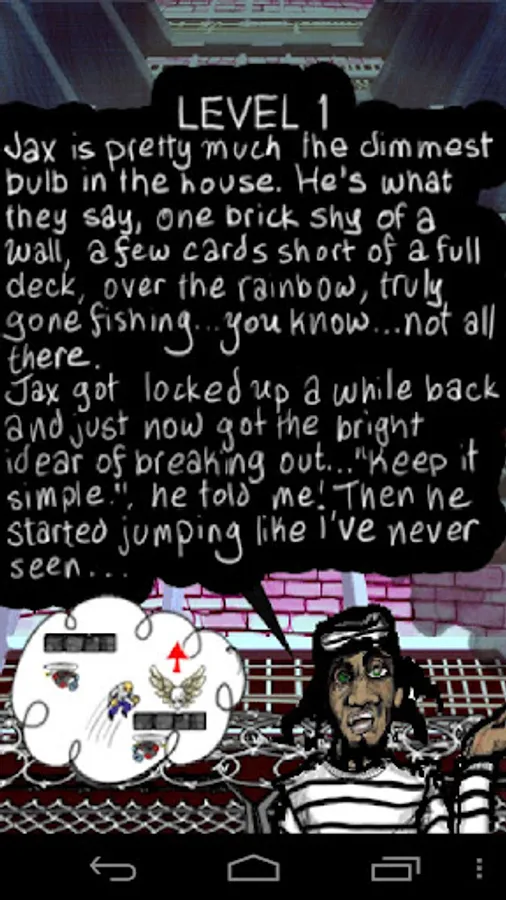 Maneuver Jax (by tilting your screen in either direction) out of jail and avoid explosive Killacopters and angry birds to name a few. Watch how Jax takes on God and even the Devil in this epic tale of Jax’s search for freedom.