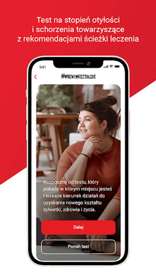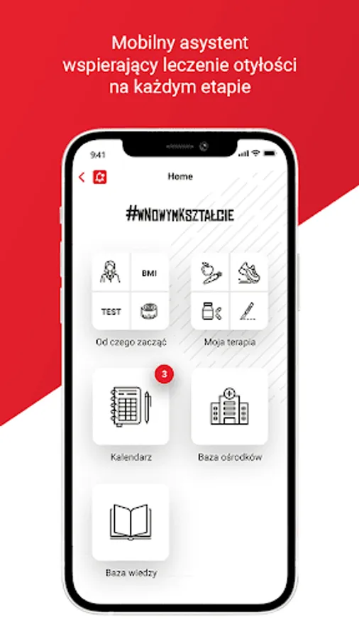 We have created the #W Nowy Kształccie application for people suffering from obesity who want to undergo treatment. It is a simple and intuitive mobile assistant that will support you at every stage of treatment and guide you towards health.