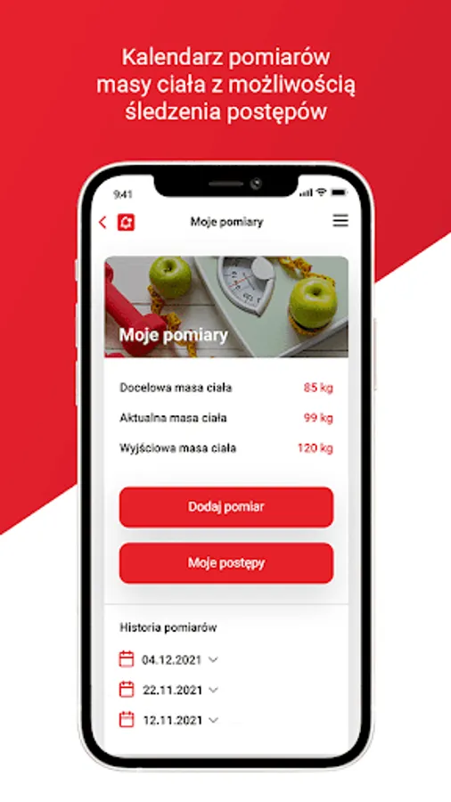 The weight measurement calendar offers you the option to monitor your weight loss in real time in line with your goal.