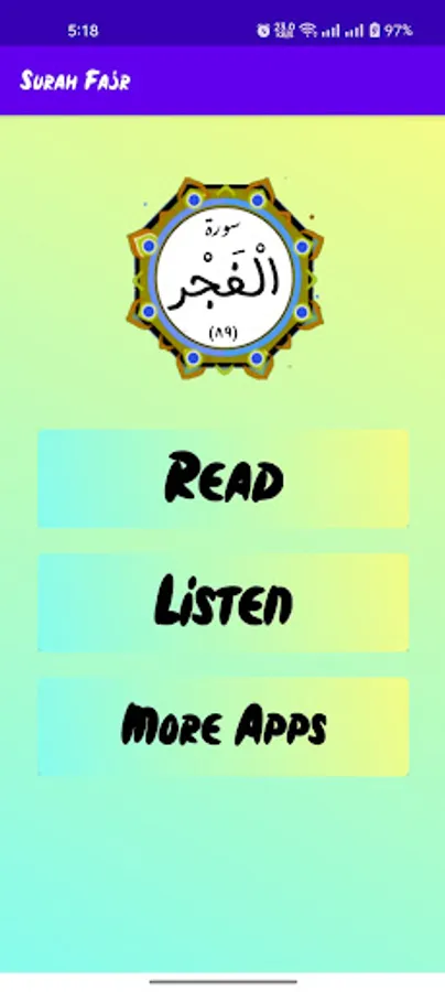 Al-Fajr (Arabic: الفجر, “The Dawn”, “Daybreak”) is the eighty-ninth chapter (sura) of the Quran, with 30 ayat or verses. The sura describes destruction of disbelieving peoples: the Ancient Egyptians, the people of Iram of the Pillars, and Mada'in Saleh.