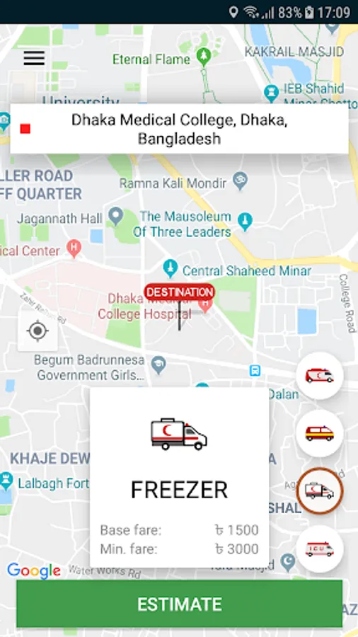 A freezer ambulance is a dead body carrier ambulance. It has freeze box in it. The freezer ambulances can intact the dead body several hours and days. The base fare as well as minimum fare for this type of ambulance is BDT500. This initial contract will be valid for 24 hours.