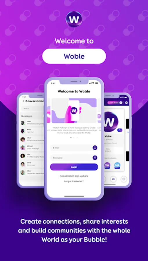 Through Woble you will be able to make connections, share interests, and build communities locally or with the whole world as your bubble. Download the Woble app, become a Wobler, and start exploring!