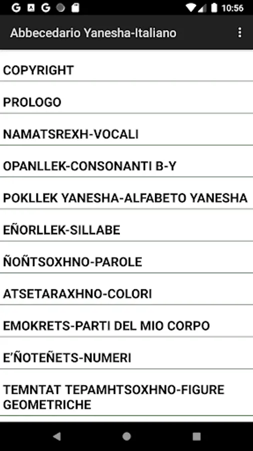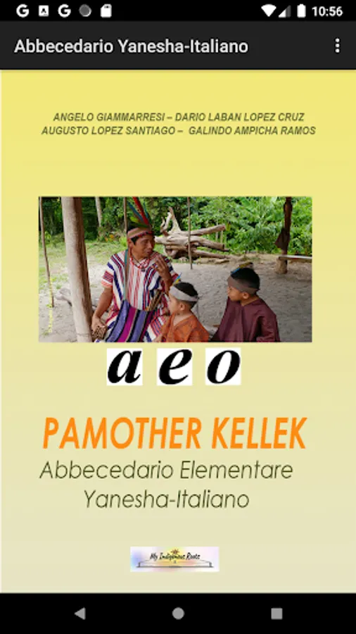 «Abbecedario Yanesha-Italiano» is the app version of the book «PAMOTHER KELLEK - Abbecedario Elementare Yanesha» is part of the «My Indigenous Roots» project, my indigenous roots, developed by me Angelo Giammarresi, director, writer and visual ethnographer with aim to preserve the ancestral oral traditions of the indigenous peoples of Peru and the world.