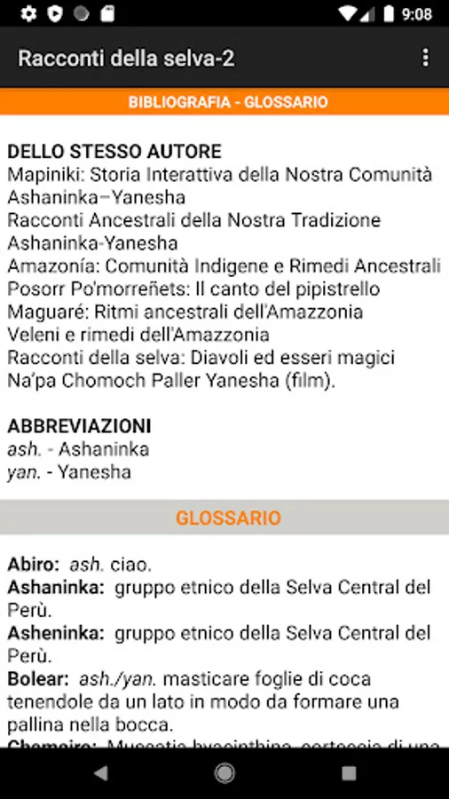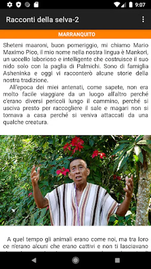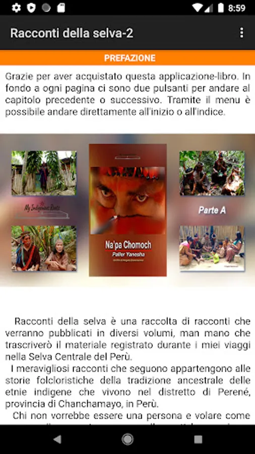 The app/book contains 3 stories from the Asheninka tradition and some photographs.