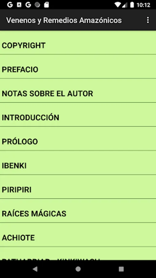 This application is just a book with text written about some poisons and ancient remedies used in the Peruvian Amazon. The videos are in Spanish.