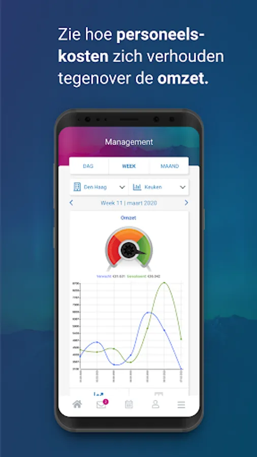 Administrators also have access to the dashboard. Here they can view real-time turnover, personnel costs, productivity and personnel. That way they have a grip on business, regardless of the location!