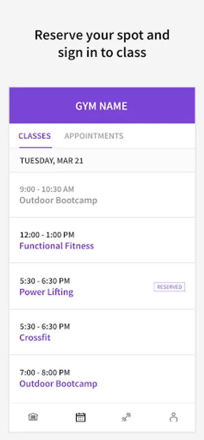 · Class Scheduling: View, reserve, and sign into upcoming classes at your gym.