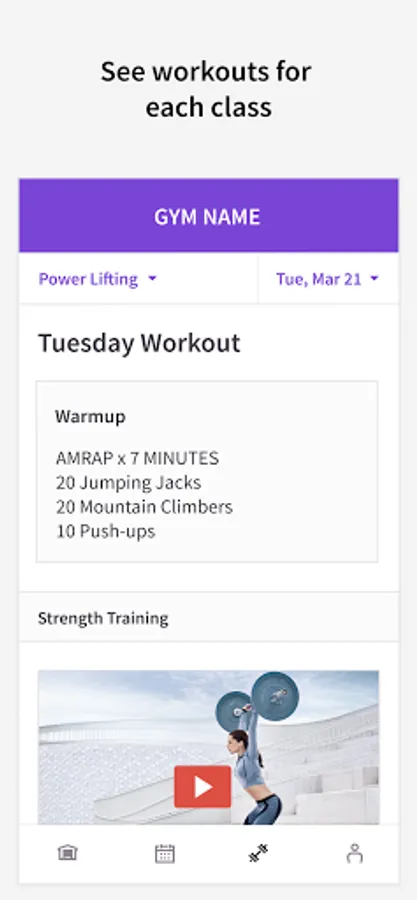 · Workout: Check out your class’ workout from anywhere and prepare to sweat.