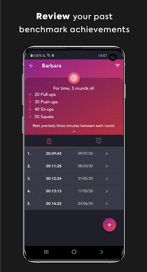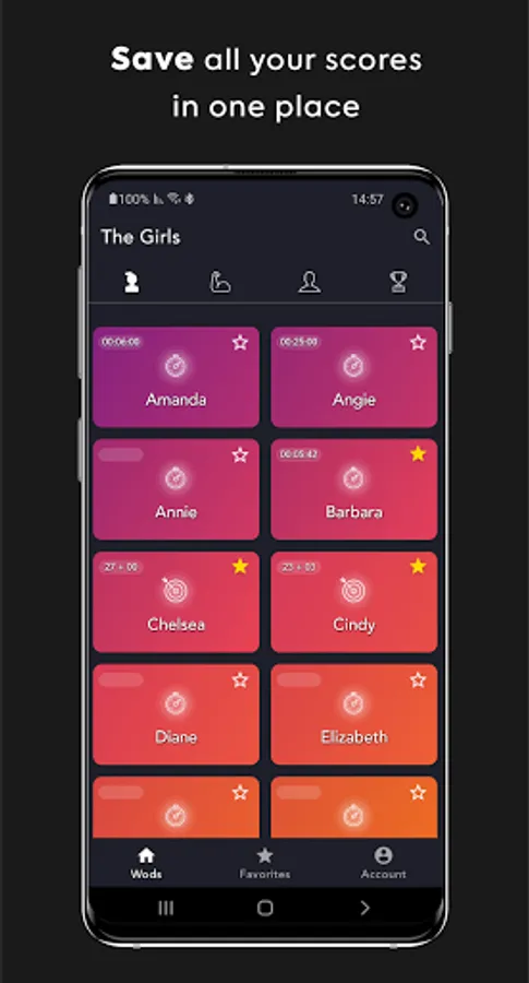 Wodstalk lets you keep all your CrossFit benchmark achievements and RM scores in one place. All scores are stored on the device and also backed up to the cloud, which gives support for both offline and online modes.
