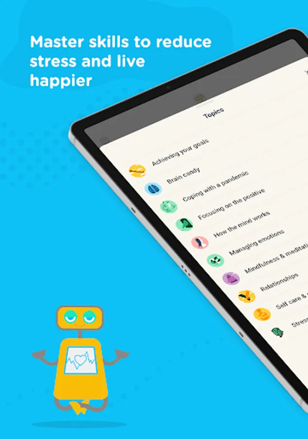 Meet Woebot, your answer to 24/7 mental health support. The Woebot app is the front door to multiple solutions. The access code given to you by your provider, employer, or other Woebot Health partner will enable access to the right solution for you. Woebot can help you manage mood and anxiety symptoms using frameworks like Cognitive Behavioral Therapy (CBT) to feel: