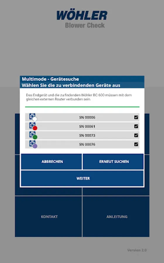 With this Android app, the measured values from Wöhler BC 600 Blower Check devices can be displayed graphically and numerically on the Android device and exported.