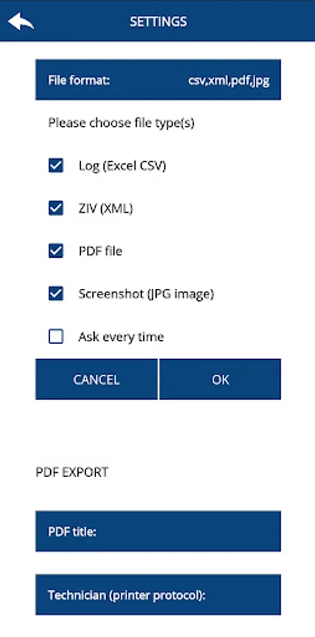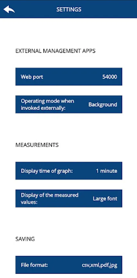 * Save the measured values as PDF, CSV, XML, JPG
