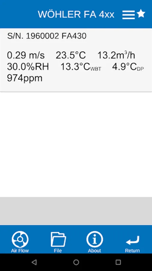 The Wöhler FA 410 and FA 430 vane anemometers from version 5.1 send measurement data to mobile end devices via Bluetooth®. The measured values are shown in the Wöhler FA 4xx app on the display of the mobile end device and can be saved in the app. The app can display the measured data of several anemometers simultaneously.