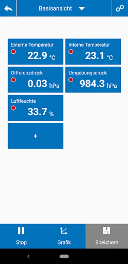 - Live screen: Individually configurable views (numerical and graphical) with all available measured values