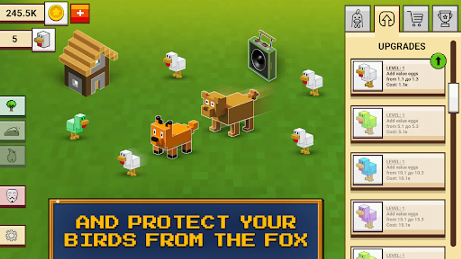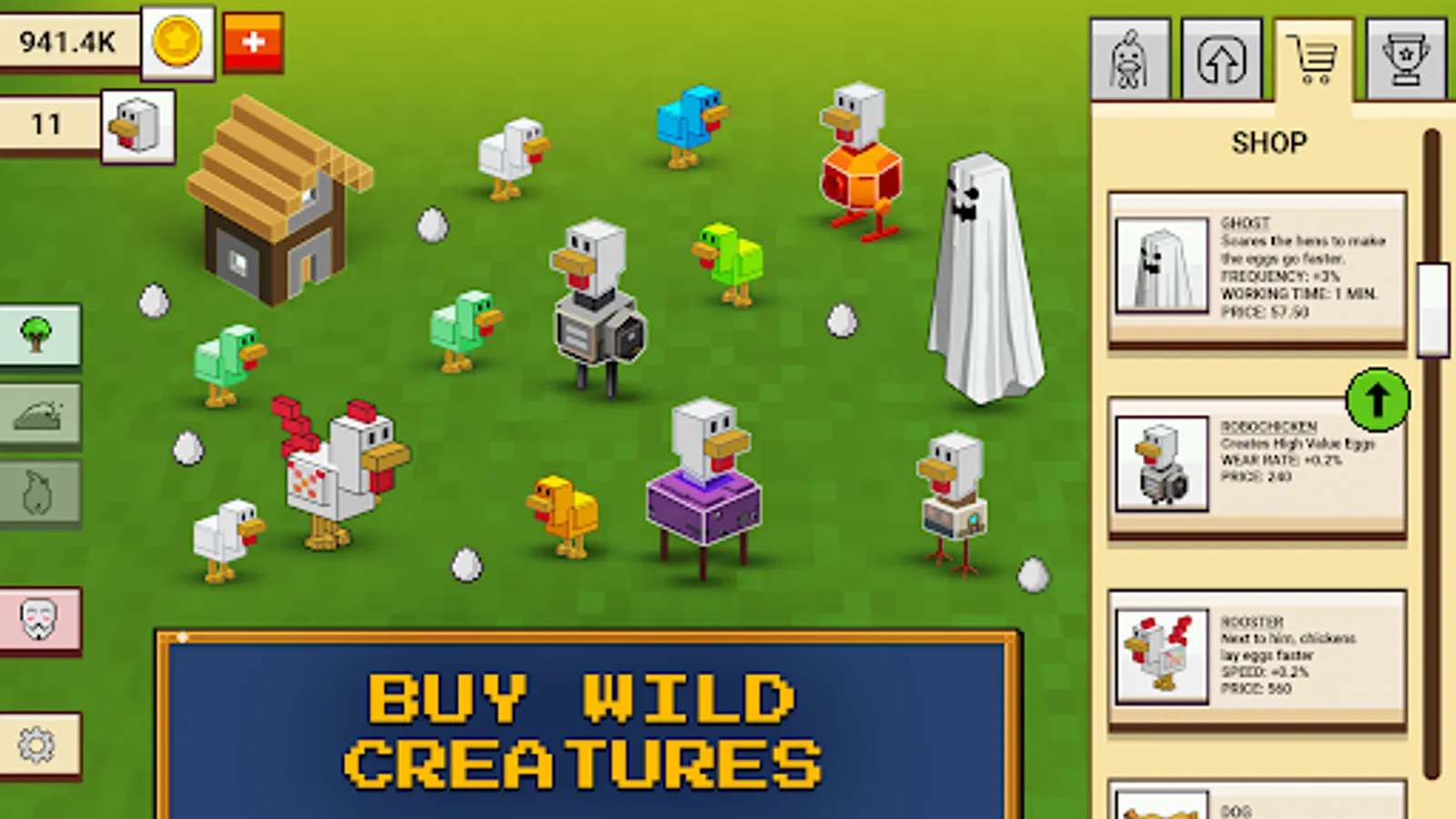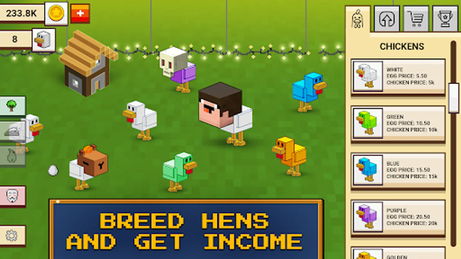 As you progress, you'll encounter a fascinating evolution mechanic with mine & craft origins skills. Witness the idle evolution clicker in action as your chickens undergo transformations, becoming more productive and valuable with each stage. Build and combine and create different breeds, experiment with genetic modifications, and discover the secrets of enhancing your flock's egg-laying abilities.
