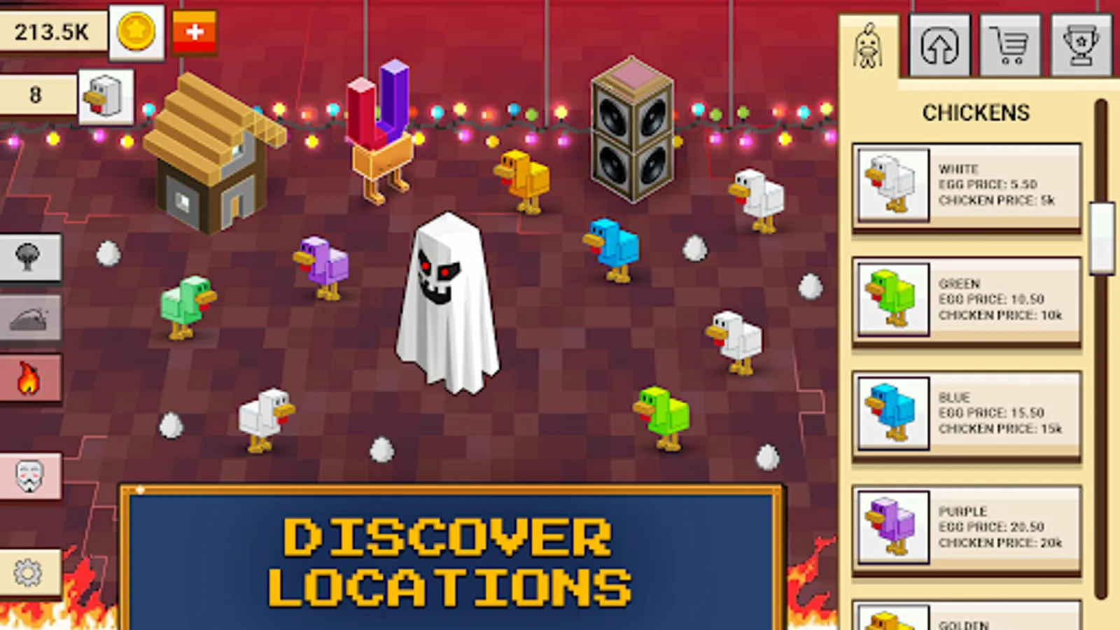 You'll have the opportunity to expand your operation beyond the confines of a traditional farm. Unlock spaces where you can cultivate chickens in extraordinary locations, such as the fiery depths of hell or the mesmerizing seabed.