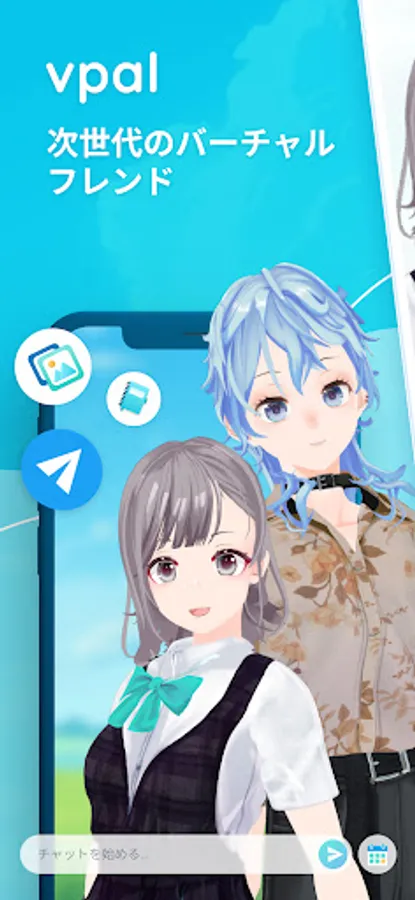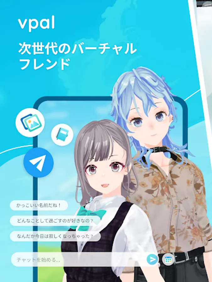 VPalは、最先端のAIチャットボットと3DCG技術を用いたキャラクターとのコミュニケーション&育成アプリです。二次元キャラクターに心が宿り、会話ができる夢のような世界の実現を目指して開発しております。