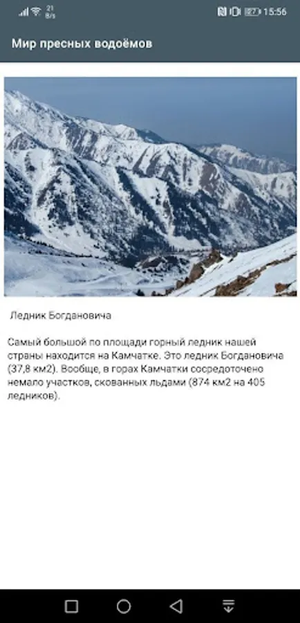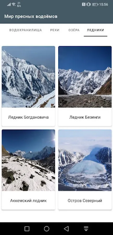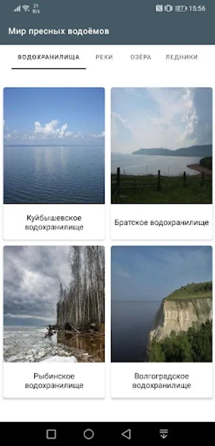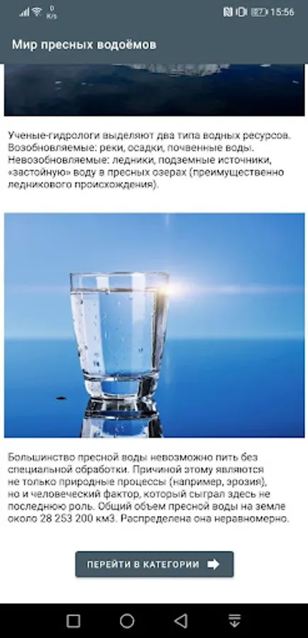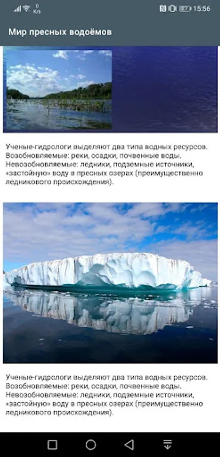 In this application, you can get acquainted with the various types of fresh water sources on the planet.