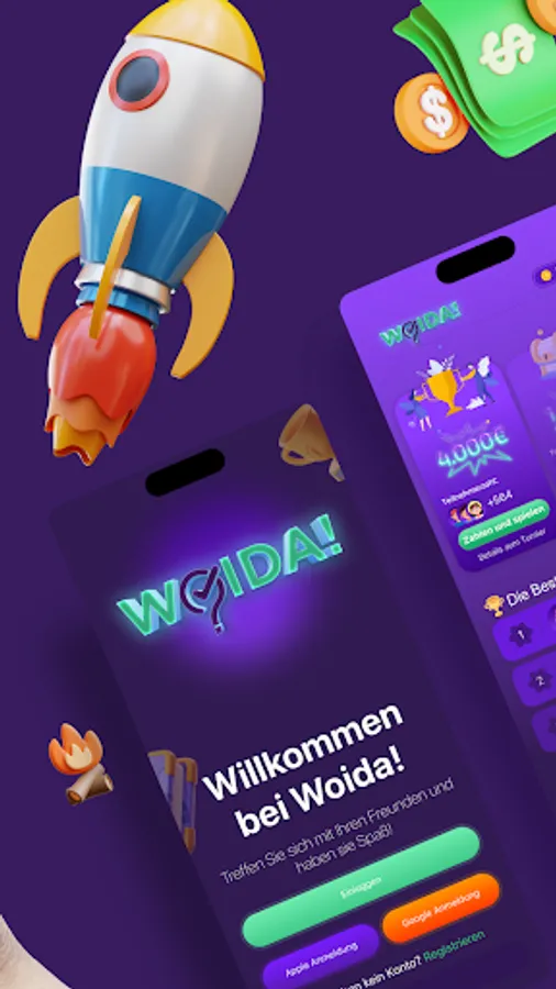 Woida ist eine innovative Plattform, auf der du dein Wissen und deine Fähigkeiten nutzen kannst, um Geld zu verdienen. Wir bieten eine Vielzahl von Quiz-Turnieren an, bei denen du gegen echte Gegner antreten und innerhalb von Minuten bis zu 2500€ gewinnen kannst. Unsere Turniere bieten Fragen von leicht bis schwer, so dass jeder eine faire Chance hat, zu gewinnen. Aber das Beste daran ist, dass du dein Eintrittsgeld bereits nach 5 eliminierten Gegnern zurückverdienen kannst. Unsere App ist einfach zu bedienen und bietet dir die Möglichkeit, überall und jederzeit an unseren Turnieren teilzunehmen. Lade jetzt die Woida App herunter und werde zum Quiz-Meister!