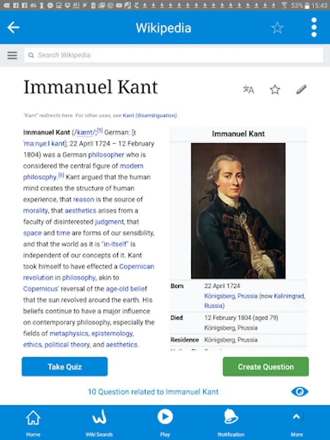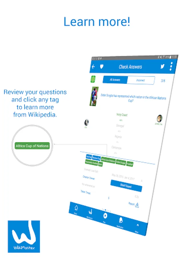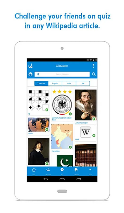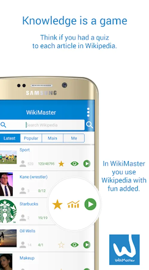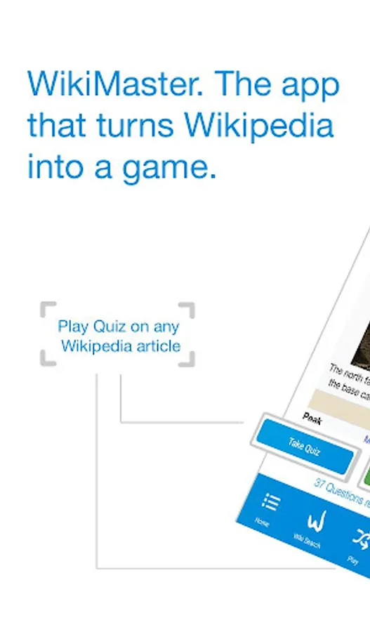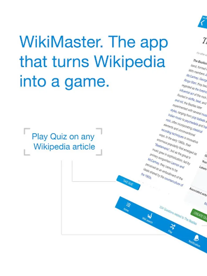 Play a quiz challenge in any Wikipedia article and become WikiMaster among your friends, in the city, country or in the World. Or enjoy Wikipedia with this app as it aims to be the best mobile Wikipedia app.