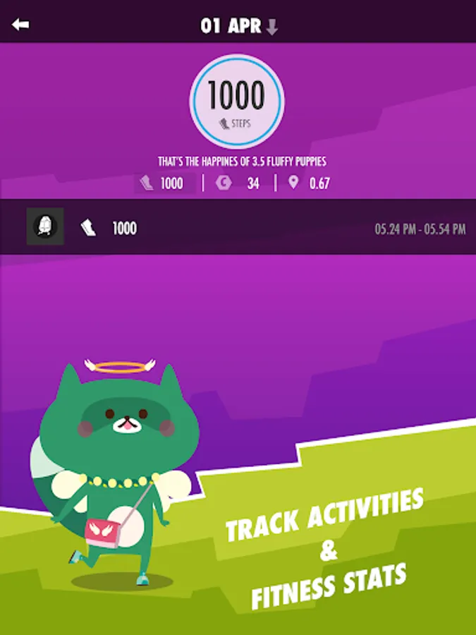 Connect to Google Fit and raise Tamagotchi with steps done by 3rd party apps. For example Runkeeper, Runtastic, Nike, Fitbit app, and etc. Enjoy with other games like Ring Fit adventure, Zombies, Run! and Walkr.