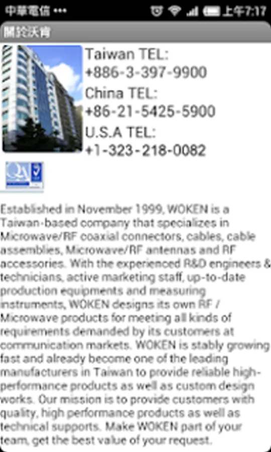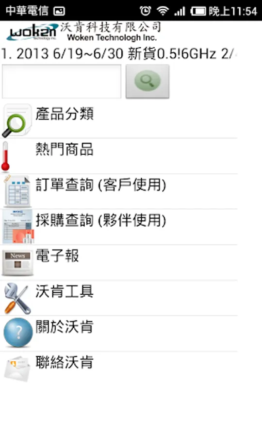 woken推出適合於Android平台的應用程式,期望給於客戶更方便的查詢RF相關產品的使用界面。